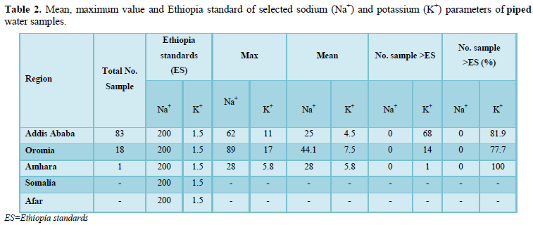Keywords: Potassium, Sodium, Piped, Drinking water, Parameter, Ethiopia