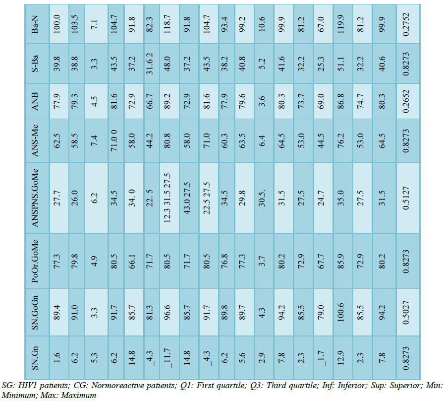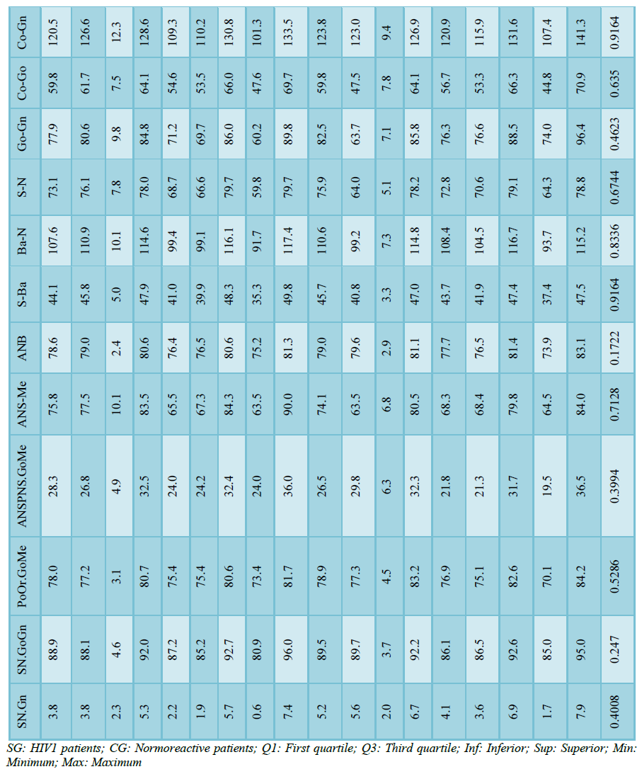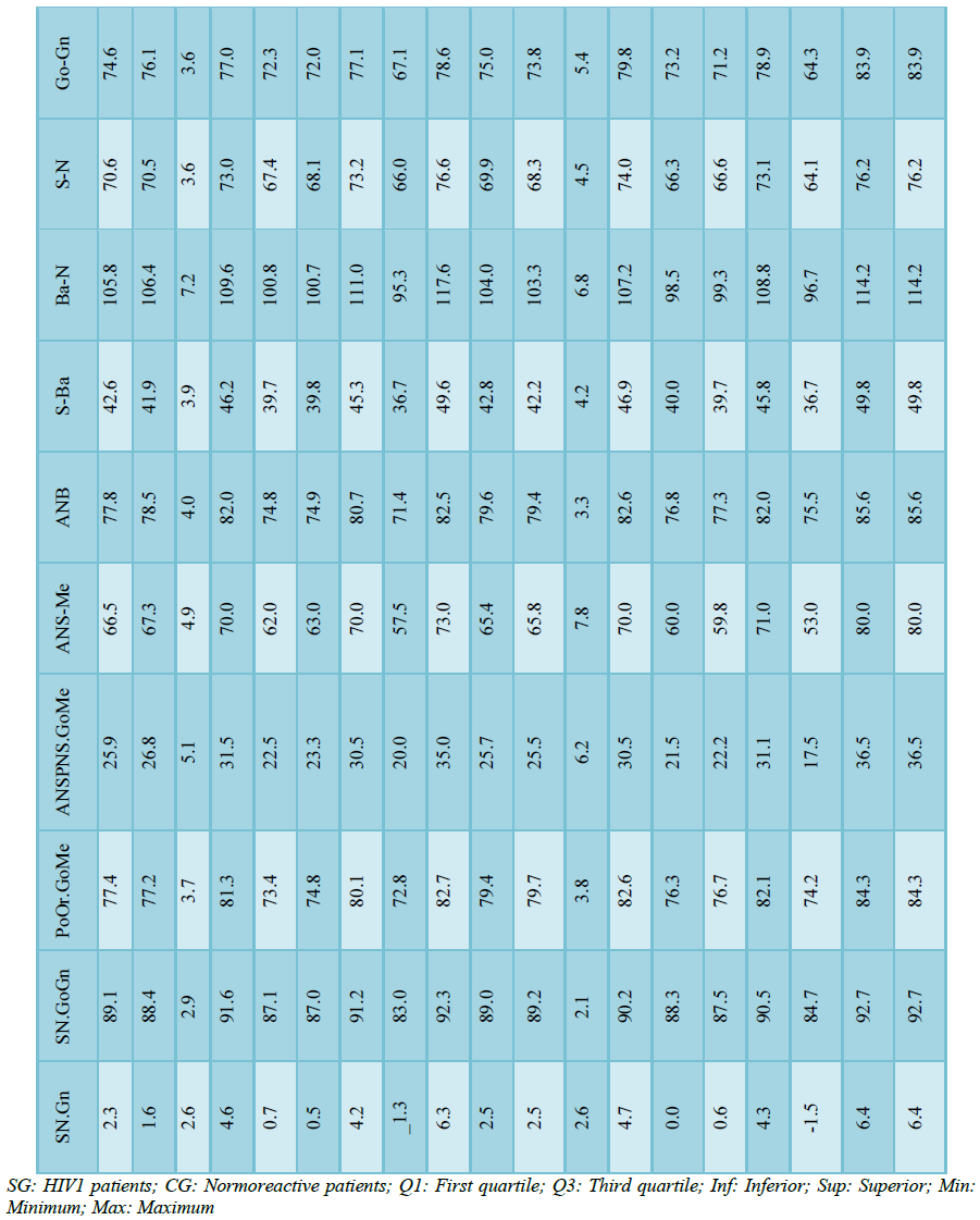 Conclusion: These results led to conclude that some of the cephalometric measurements of HIV-positive adolescents may be similar to those of the normoreactive subjects