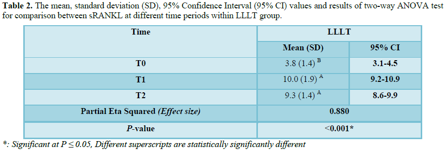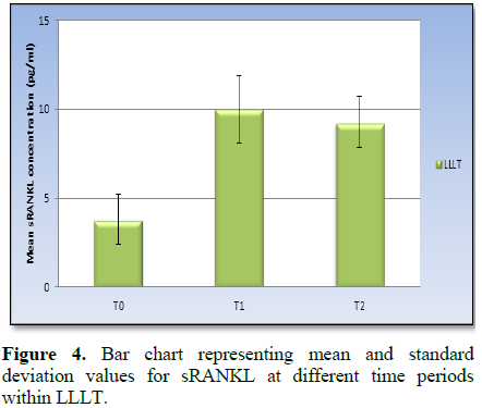 in RANKL concentration levels in the Laser Group from T0 to T1, there was no