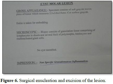 histiocytes and multinucleated giant cells. No cyst was identified. The result