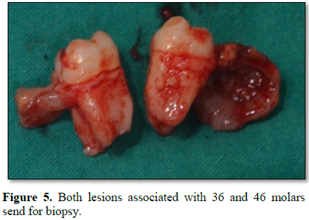 advised for OPG. OPG revealed presence of radiolucency wrt to 36 and 46.