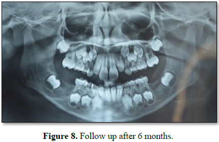 Patient was recalled after 6 months and no swelling or radiolucency was
