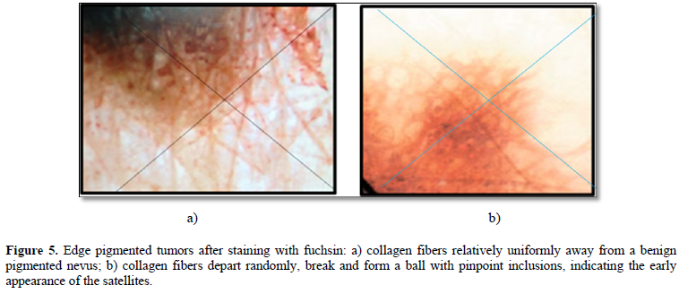 (picrofuxin). For surface forms of pigment neoplasms, the dye penetrates the
