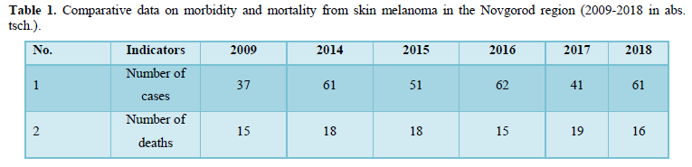 the state of diagnosis of skin melanomas in the region. It is shown that the