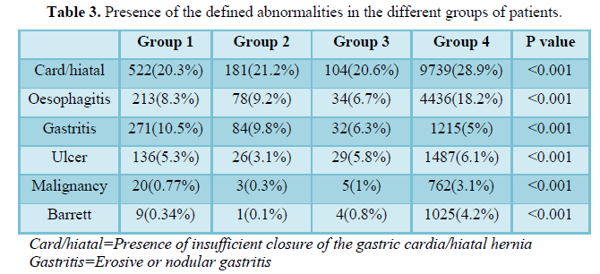 hiatal hernia, oesophagitis and Barrett’s) were significantly more often seen