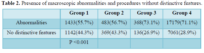 of procedures without macroscopic abnormalities. Patients in groups 1 and 2