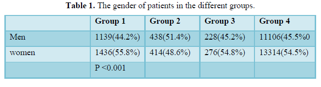 of groups 1 and 2. Patients belonging to group 2 had significantly less often