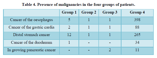 were significantly more often diagnosed in patients in group 4 (group 1: 0.73%,