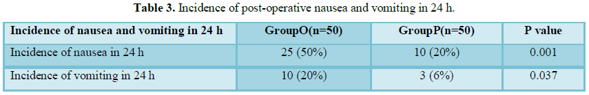 anti-emetics as compared to 6 patients in group P during 0-24 h time interval