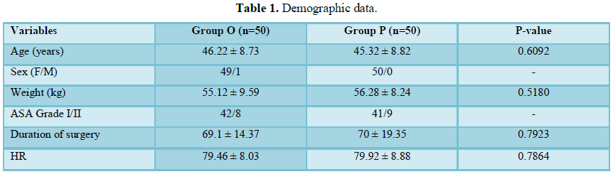 selected for the study. Only patients belonging to ASA I and ASA II were