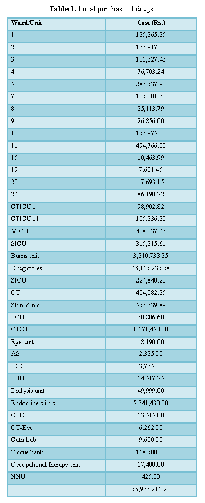 In the case of institutions managed by the Provincial Councils, reports should be sent to PDHS, RDHS in addition to DMSD. Information regarding local purchases made by each consultant should be circulated among all consultants of the institutions monthly. A review of the expenditure on local purchase by each unit should also be made available at the monthly drug review committee meeting and comparison of the same with respect to expenditure on hospital formulary items and its variation over the month should also be discussed.