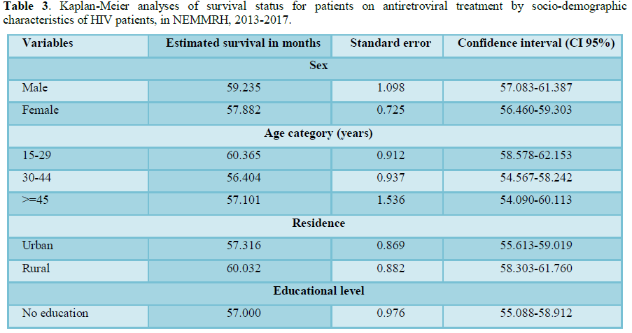 Assessment of the survival patterns among HIV-infected patients who are on ART