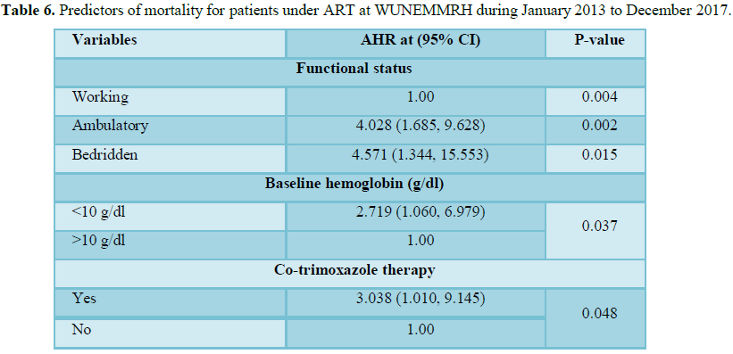 17. Ergete D (2011) predictors of mortality among