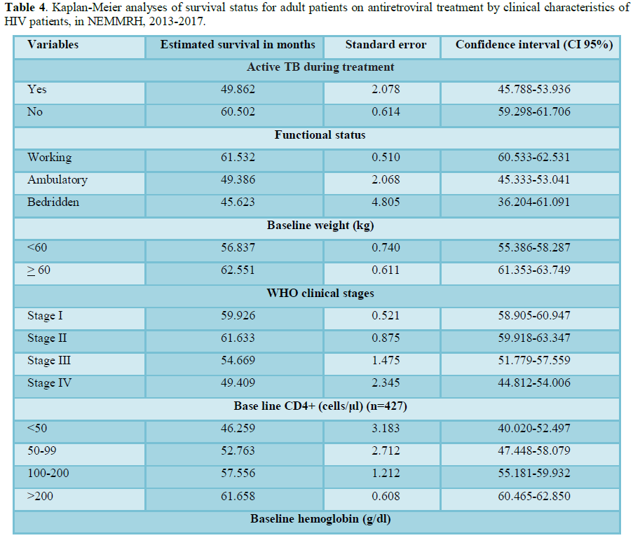 survival estimation showed that overall estimated survival duration after ART