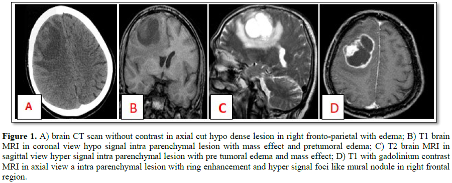 we present a patient with intra paranchymal cystic lesion with mural nodule a