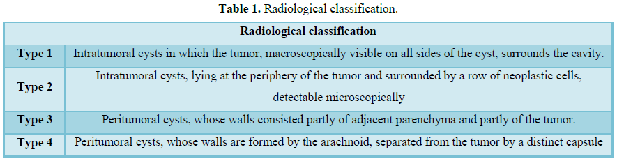 tumor [1], intraparanchymal with cystic part without dural attachment type is
