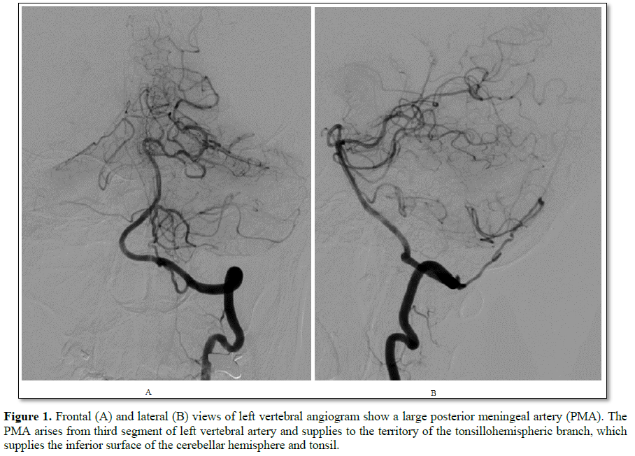 large PMA arising from the third segment of the vertebral artery (Figure 1). The course of the PMA