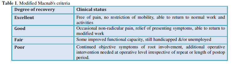 clinical outcome was assessed according to Modified MacNab's Criteria as