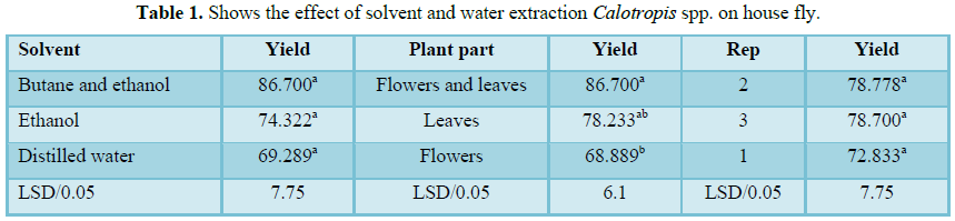 procera (Asclepiadaceae) were tested against house fly. The obtained