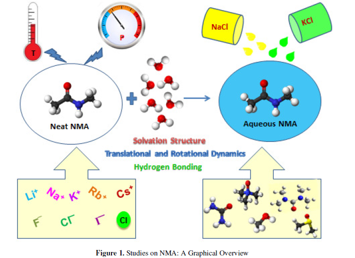of salt solutions in liquid as well as aqueous solution of NMA. Initially,