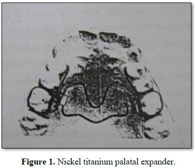 Nickel palatal expander, using force levels between 230 g and 300 g. The