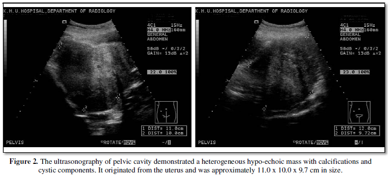 Then ultrasonography was arranged to evaluate the pelvic mass, which