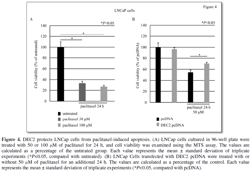 LNCap cells. When LNCap cells were exposed to paclitaxel, DEC1 overexpression