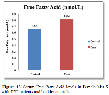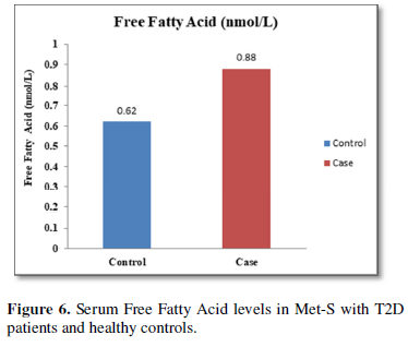 Additionally, biochemical parameters of the participants in the present study are given in the Tables 1 and 2. Serum Fasting Glucose, HbAlc, Triglycerides, Total Cholesterol, LDL-C, VLDL-C, Leptin and Free Fatty Acid levels were significantly increased (P<0.001) and HDL-C, adiponectin levels were significantly reduced (P<0.001) patients with Met-S and healthy compared to controls (Tables 1 and 2 and Figures 1-3).