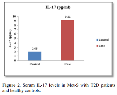 IL-17A is a potential inflammatory cytokine which contributes to several autoimmune and inflammatory diseases including type 2 diabetes mellitus [57]. Several studies showed that Interleukin-17A could be considered as a potent inducer of type 2 diabetes mellitus. This present study revealed that the circulating levels of serum IL-6, IL-17, IL-23 and adipokines in metabolic syndrome with onset of type 2 diabetes mellitus. We have found that significantly elevated in the circulating serum levels of pro-inflammatory cytokines IL-6, IL-17, IL-23 in Met-S diagnosed patients with type 2 DM were compared to healthy subjects in Indian population.