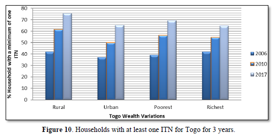 As can be observed in Figures 2-10 most individual countries analyzed had increase in the percentage of households with ITN with progress in years though a few showed reverse in some wealth zones/years.
