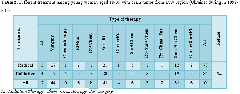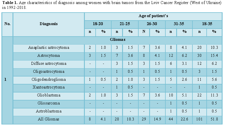 patients with brain tumor from Lviv region during 1992-2018 showed that there