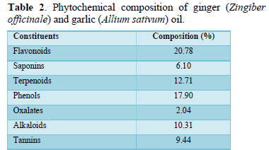 Phytochemical composition of ginger (Zingiber officinale) and garlic (Allium sativum) oil