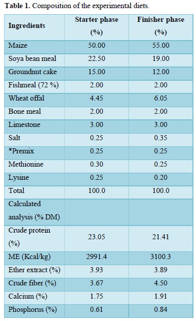 On the 56th day of the experiment, 6 birds were randomly selected per treatment for caecal microbial enumeration (E. coli, Salmonella spp and Lactobacillus spp). A 10-fold serial dilution method was used in which 1% peptone solution was mixed with caecal samples and poured unto agar plates (Model R4-02X, Punjab, India) and incubated at 37°C for 48 h. Visible colonies were enumerated using colony counter and the results were expressed as log10 CFU/g of caecal digesta.