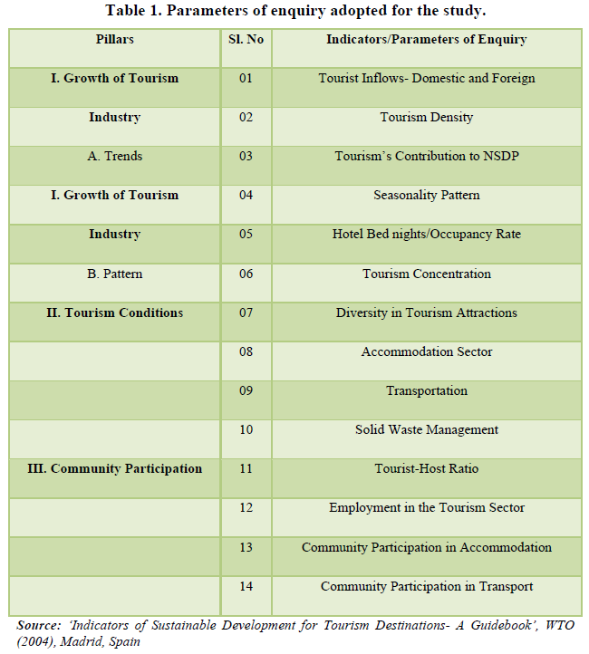 In the following section, tourism indicators are studied through fourteen select parameters of enquiry.