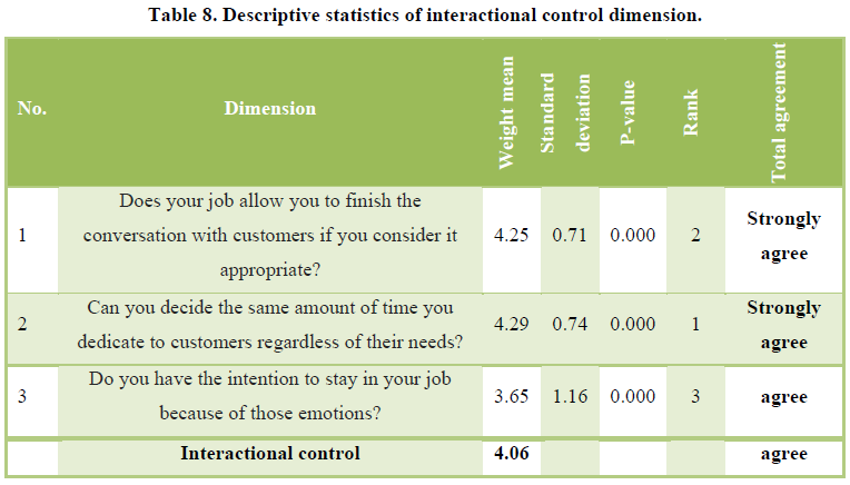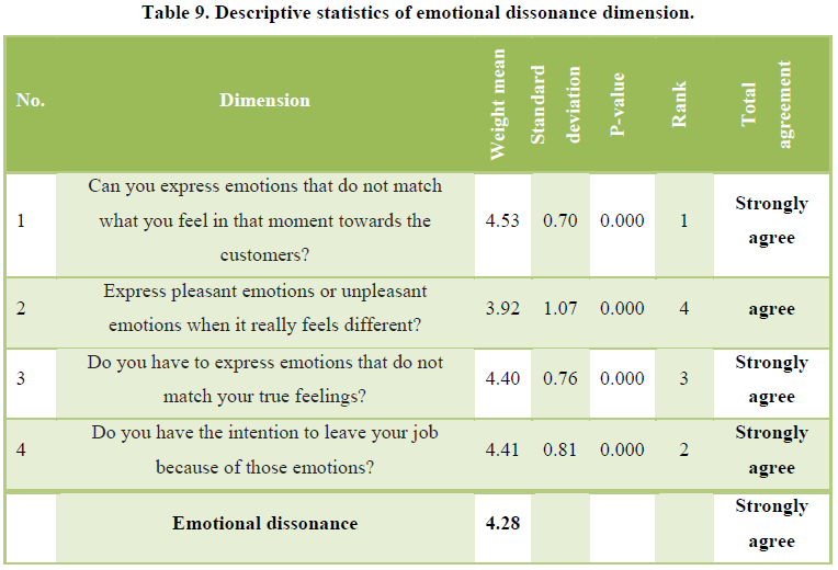 perceive the impact of emotion work dimensions on their willing to leave a job.