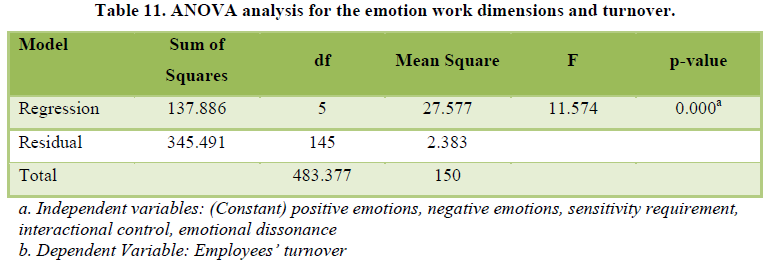 between the scales of Emotion work and turnover were significant. The analysis