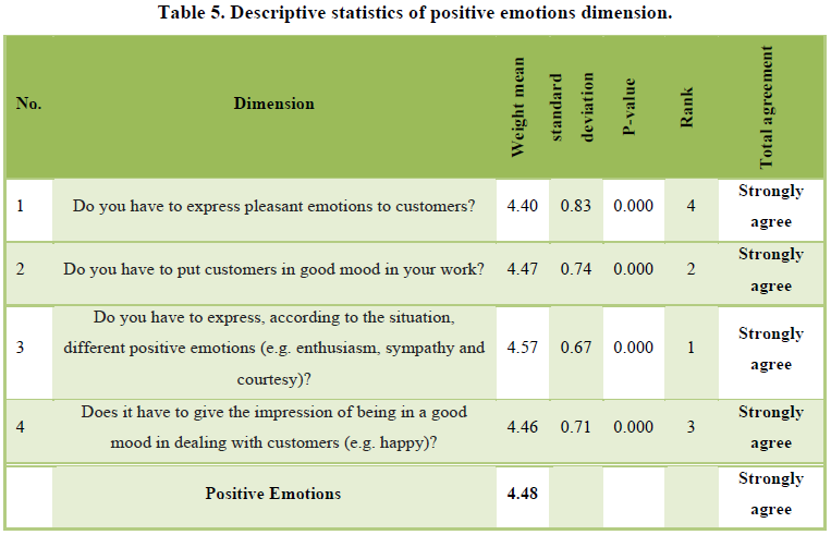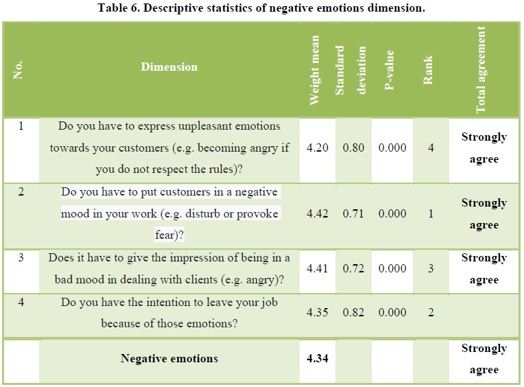 by order: positive emotions, negative emotions, emotional dissonance,