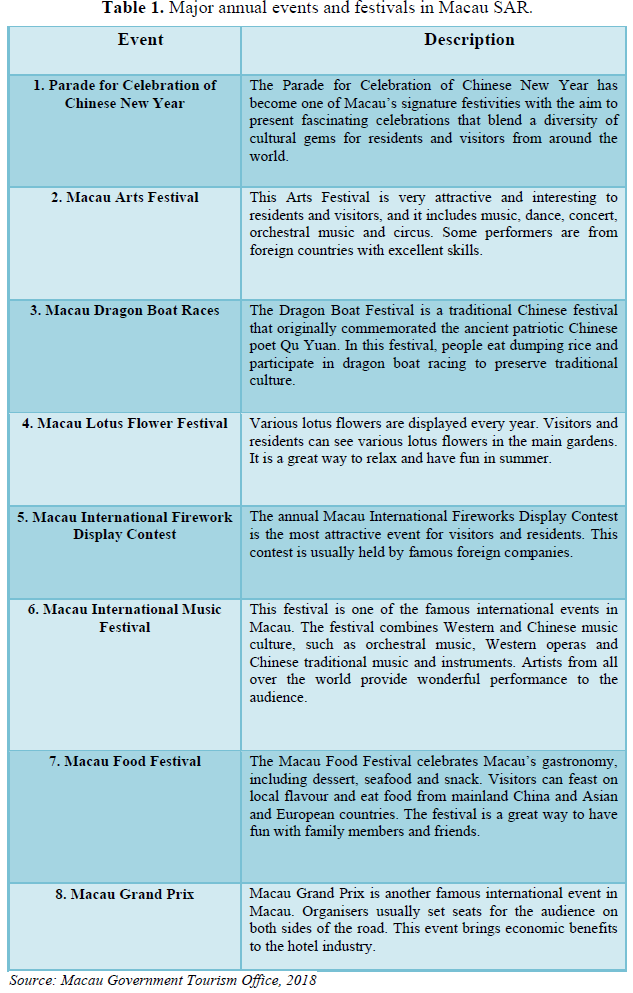 major tourism events designed and organized by the Macau governmental