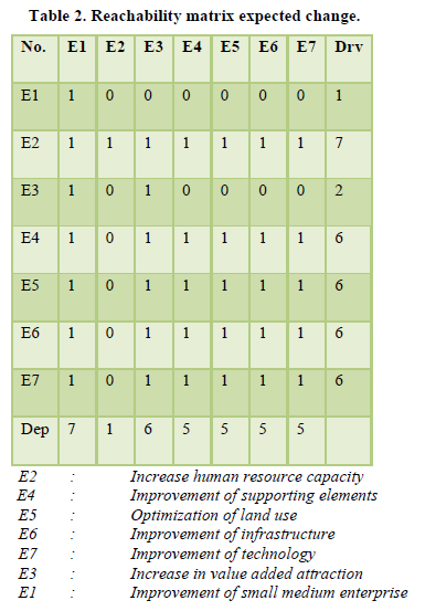 Figure 3 shows an increase in human resource capacity (2) is the most expected change in the improvement of supporting elements (4), optimization of land use (5), improvement of infrastructure (6) and improvement of technology (7) which are interrelated changes to one another. In addition, it also supports the increase in value added attraction (3) and improvement of small medium enterprise (SME) (1).