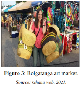 tourists who come to feast their eyes on that ancient piece of beauty. In the Bolgatanga market, the most popular products displayed are straw woven baskets, called Bolga baskets. In farming seasons, many agricultural products are sold there. The things that make the Tongo community a popular tourist attraction site are their festivals, the Tenzug shrine and the whispering rocks. The people of Tongo are deeply traditional people who often worship at the shrine which is perceived to grant good luck and prosperity to its visitors. The Tongo ills are also known for their many astounding, natural rock formations (UNESCO, 2018). The Via dam at Bongo and Tono dam at Navrongo are major water sources for irrigation, flood control and recent Government of Ghana Flagship irrigation farming for food security enhancement programs and other development projects in northern Ghana (Agbeko et al., 2019).