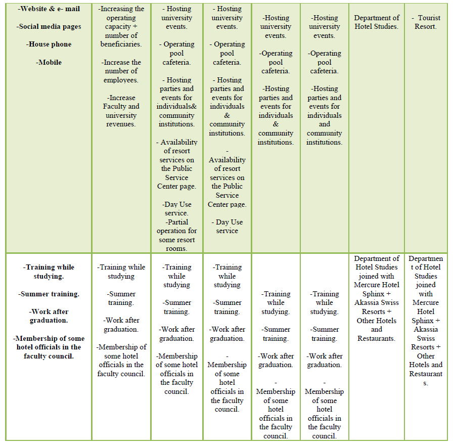 - Applied and Community: The study provides a successful experience of the Hotel Studies Department at the Faculty of Tourism and Hotels- Fayoum University in serving the community and build partnerships with businesses and employers in the hospitality industry.
