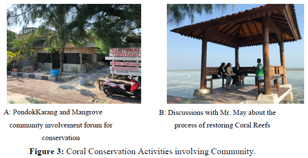 Another form of community participation on Pramuka Island is Mangrove Planting and Coral Reef Transplantation. One of the residents who is actively participated in coral reef planting and conservation was Mr. Mahmudin who likes to be called Mr. May, according to him, his involvement in the transplantation of coral reefs has been carried out since 2003, as a responsibility to the past as a destroyer of Coral Reefs. Because of his expertise, he is often invited to Raja Ampat to carry out coral reef restoration.