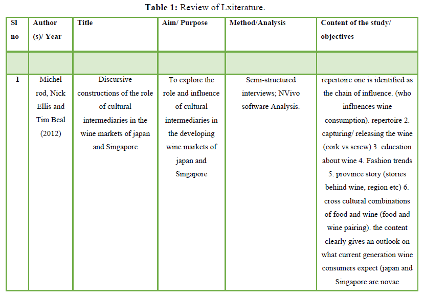 Review Methods: The literature was derived from the published research articles. The selection criteria for the review included the studies that were; written in English, related to promotion and welfare of wine tourism in the hospitality sector, Marketing in the hospitality sector.
