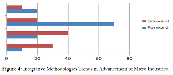 The results in Figure 4 indicate that forward integration is ahead in influencing the development of micro industries to become competitive and grow to achieve economies of scale. On the other level, backward integration equally plays a significant role in engineering the advancement of micro industries (Rungi, & Del Prete, 2018).