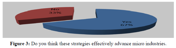 The results show in Figure 3 indicates that 67% of the respondents agree that micro industries are highly utilizing integrative methodologies in engineering the growth of this sector through cutting cost in sourcing inputs and the distribution of products to customers (Defever & Toubal,2013). However, 33% strongly disagree that these strategies are not being well applied across micro industries to influence their immediate advancement (Hartman, Ogden & Hazen, 2017).