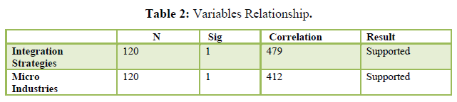 The results indicate that there is a relationship between micro industries and integration strategies. The results in Table 2 indicate that the respondents did agree that integration strategies were associated with advancing the development of micro-businesses (p>0.05). The p values of 0.479 and 0.412 are less than 0.5, indicating that the result is significant. Equally, the hypothesis showed that backward and forward integration approaches have a significant relationship with the advancement of micro industries in Zimbabwe.