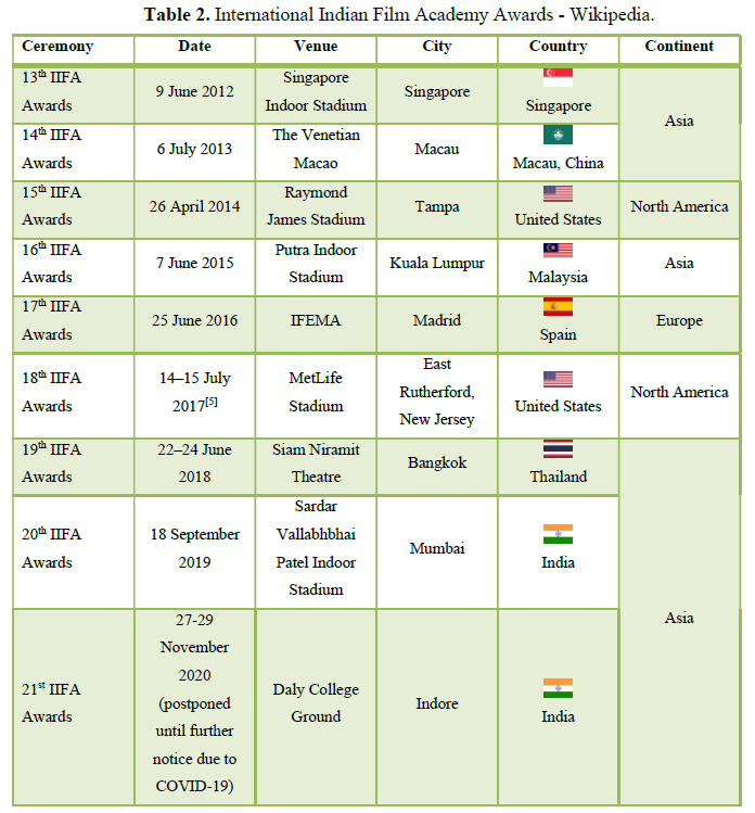 Getting so many stars and directors and other technical team members into a single city, other than their home turf, Mumbai, was never imagined before. Gaining access to film stars and personalities, and scheduling interviews and media interactions with them so as to drive coverage. IIFA awards have evolved during last two decades since inception, where originally planned as celebration of the success of Indian Hindi Film Industry in a foreign destination, it has now become a proper networking and business event showcasing Bollywood capabilities and reach to the global audience and their film industry (Ryan, 2012). Such is the power of IIFA Awards that there are repeat requests from multiple destinations for the return of IIFA to their land for the sheer boom it brings to their economy through the Star and Film continents and their followers from across the globe (Smith, 2005). IIFA Awards have also broken the typical stereotype of Hindi Cinema, which was considered only a mass production with songs and drama with no substance. However, it has been successful in promoting class and range of Hindi cinema along with the technical talent pool available.