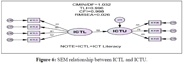 From the argument made above, there is a positive relation between ICTL Literacy (ICTL) and ICT adoption, the SEM model in (Figure 6). indicates this relationship.