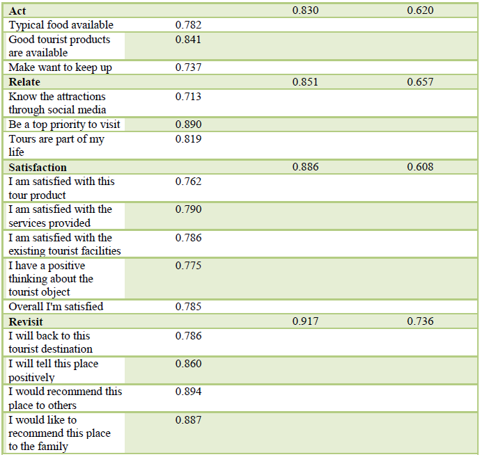 satisfaction and re-intention to visit used Partial Least Square (PLS)