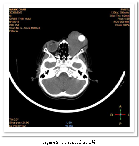 majority of the disease is intraocular. This is a case of 6 year boy presenting